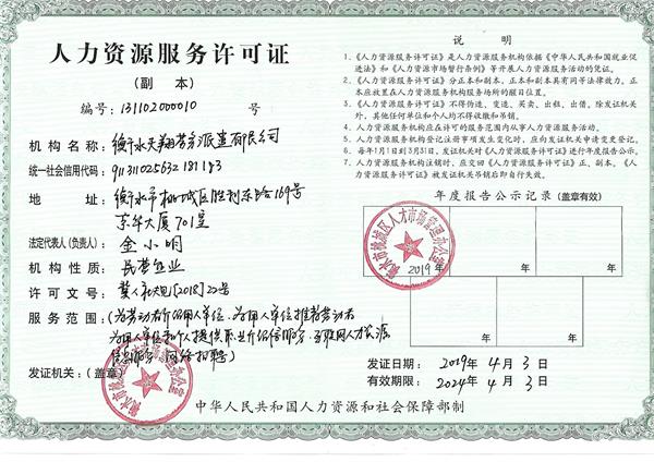 勞務派遣經(jīng)營許可證副本